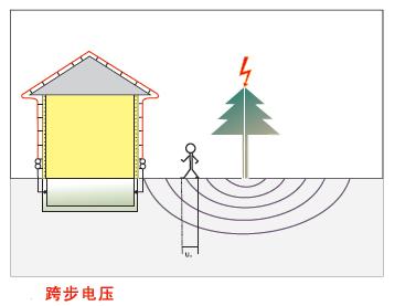 雷電發(fā)生時,周邊上的樹木可能會成為引雷的物體,當雷電擊中樹木時,強大的雷電流會在樹木周圍形成極高的電勢差,若人的兩腳站在不同的電勢地面時,就會產(chǎn)生跨步電壓U。這種跨步電壓可能 會結人體造成至命的危險。