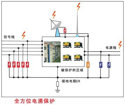 通過對電源線、信號線、天饋線等所有的線路進入機房端均安裝防雷器,以達到全方位的雷電浪涌防護。